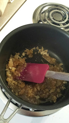 | Sugar on the way to caramel for coating the pan before I make Brazilian pudim |